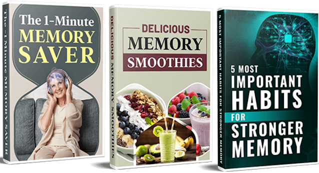 And the value doesn’t stop there. With 3 exclusive bonuses—the 1-Minute Memory Saver, 15 Delicious Memory Smoothies Report, and 5 Most Important Habits for Stronger Memory Infographic—you get everything you need to support long-term mental vitality and unlock your best cognitive self.